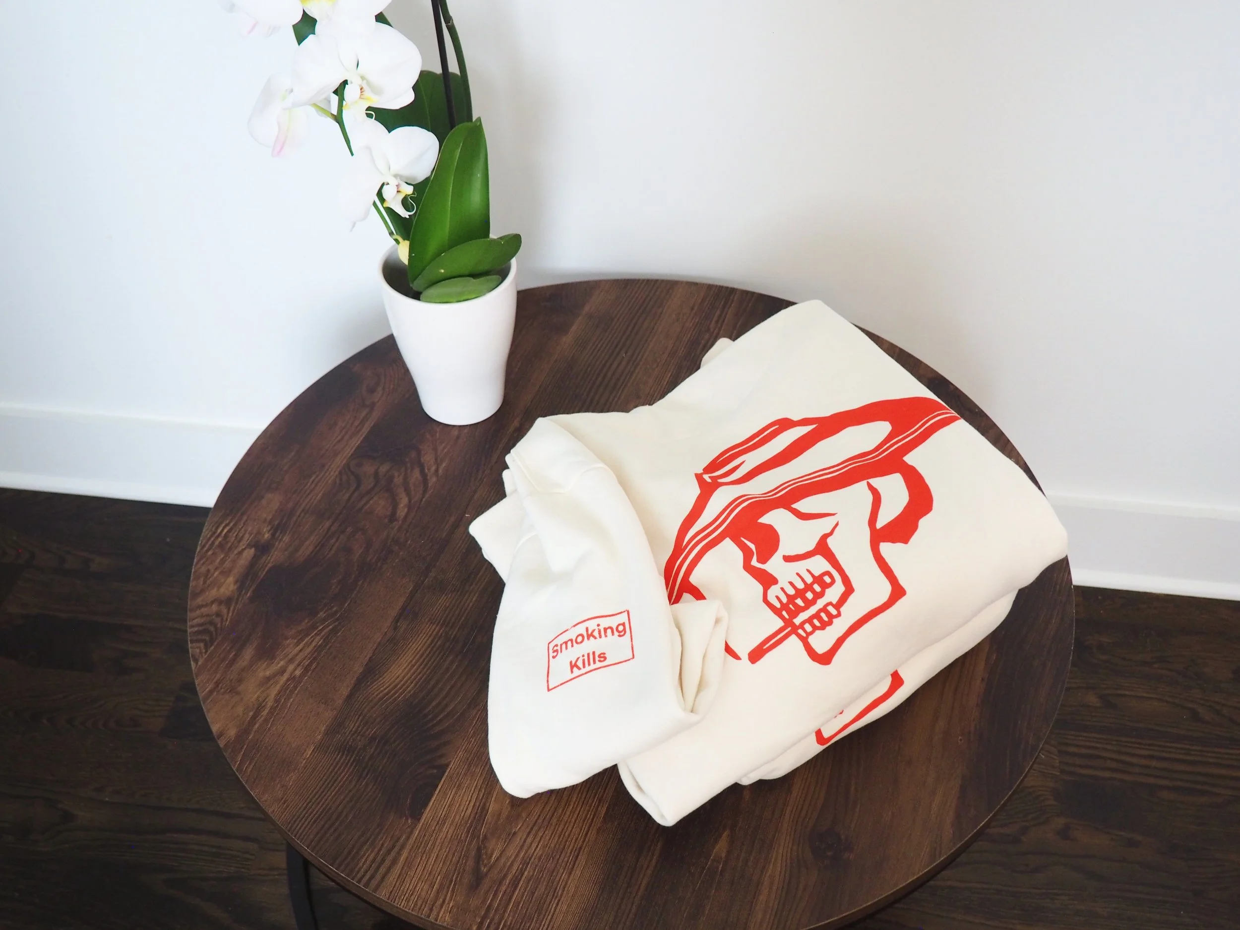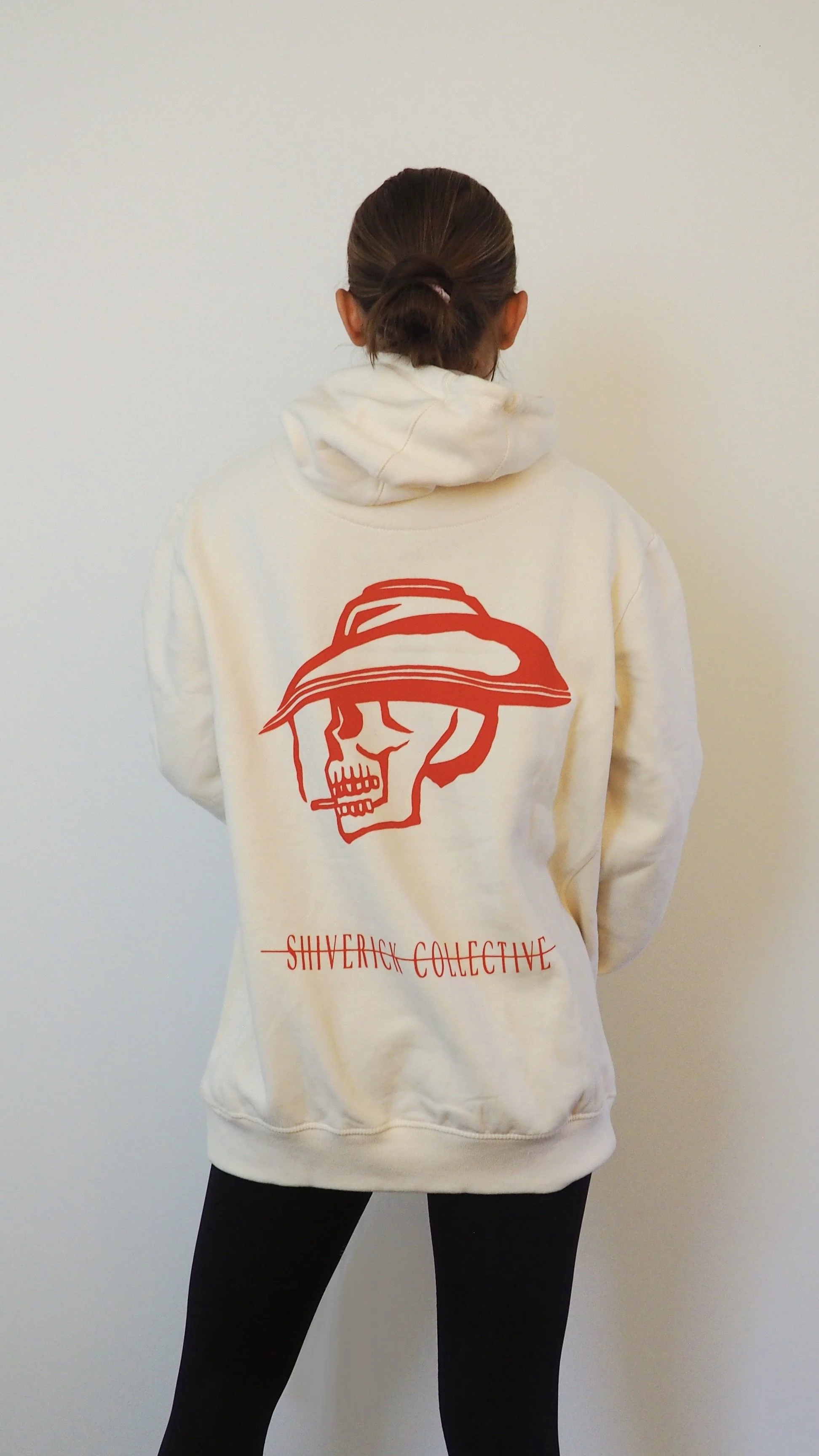 50 limited edition oversized hoodies in natural white and scarlet red. 400gsm heavyweight organic cotton, blank front, and printed design on back and left sleeve. Ribbed siding and an adjustable drawstring hood.
