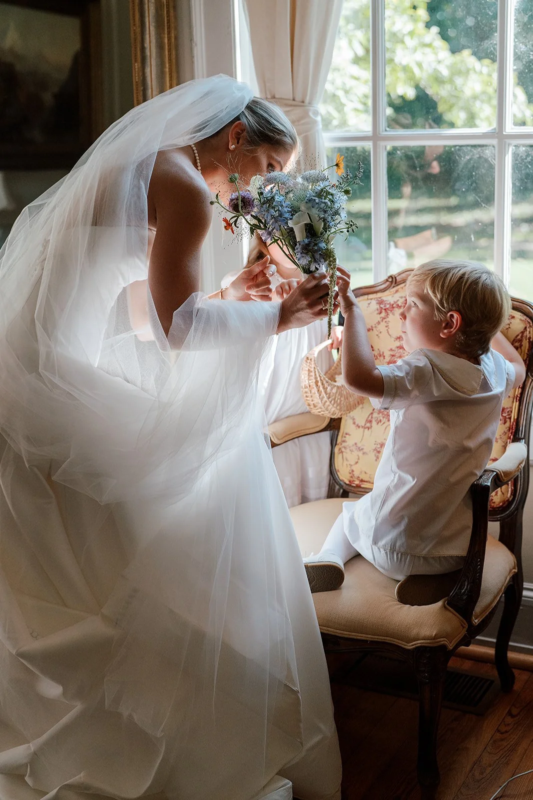 By Friday morning, the energy had shifted into full celebration. The men spent the day outdoors, shooting and fishing, while my bridesmaids and I enjoyed brunch and flower arranging. The bridesmaids and I created all the florals for the rehearsal dinner ourselves — arrangements that would later be repurposed for the reception. It turned into a fabulous bridal luncheon, complete with quiche, wine, and a table full of blooms. This was one of my favorite moments from the weekend: laughter, creativity, and a fun activity to come together.