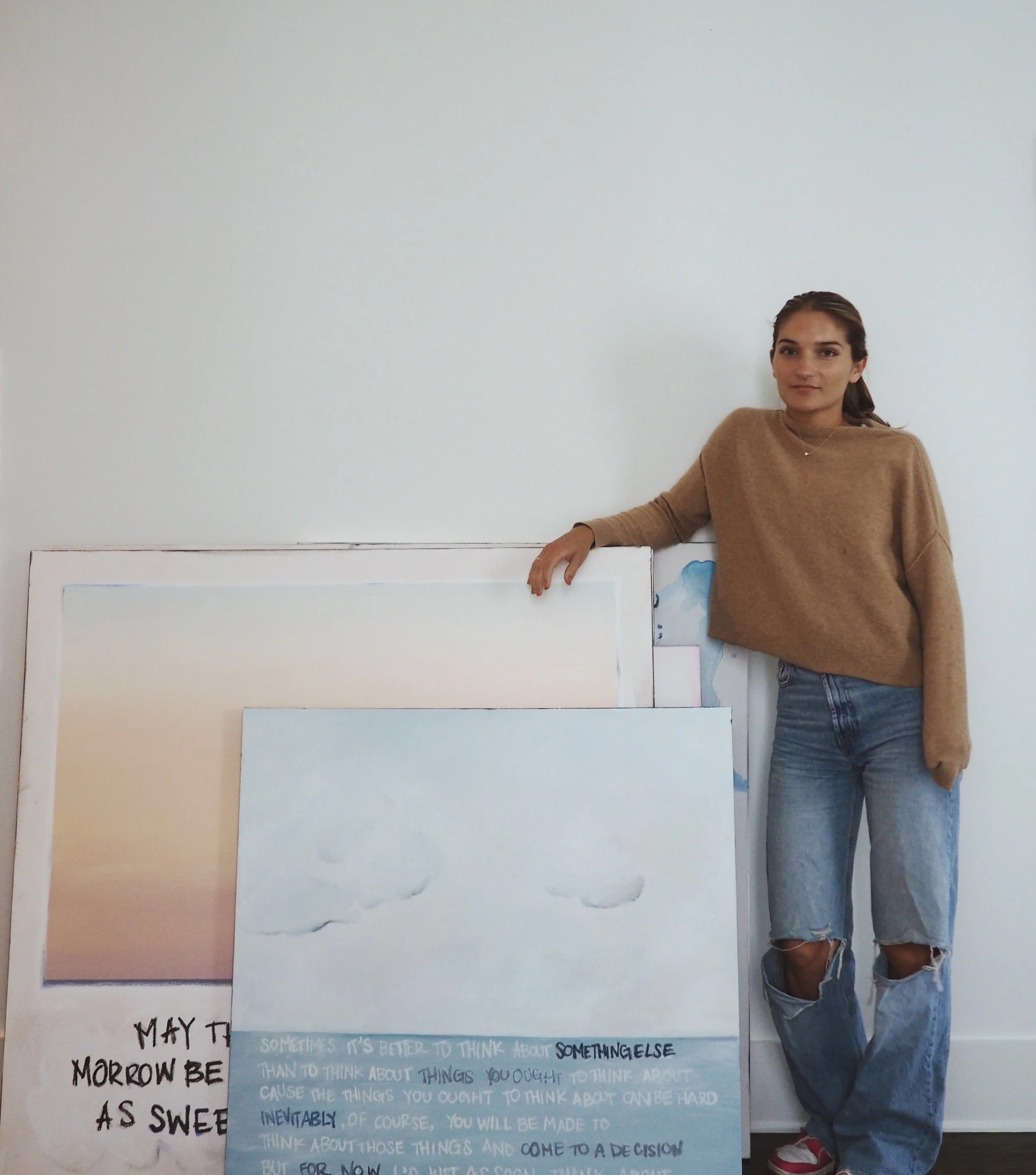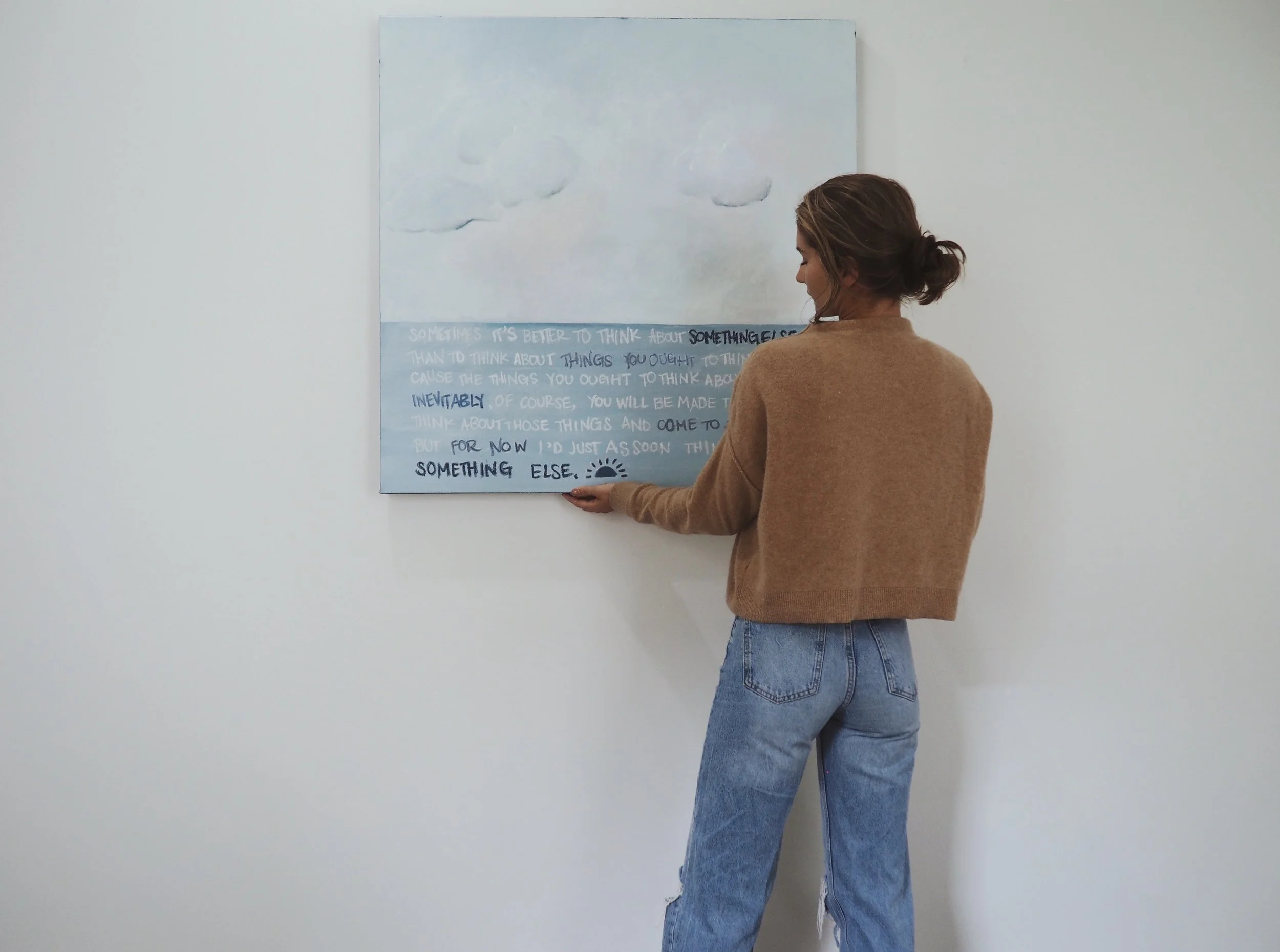 In creating the pieces for Credit the Muse, I wanted to carry that same feeling forward — to make work that feels both elevated and accessible, intimate yet timeless. Each painting in the collection draws loosely from the mood, rhythm, or imagery in his poetry: a nod to how he saw the world, and a reflection of how his words helped shape how I now see it.